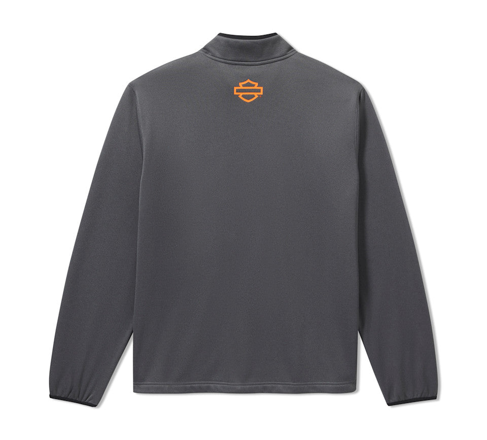 Quarter-zip pullover. Elastic cuffs.
